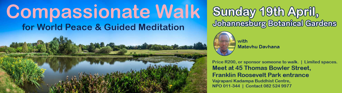 With a peaceful and positive state of mind, we will engage in a gentle and comfortable walk in the beautiful Emmarentia park, for about an hour, thereafter we’ll engage in a group meditation which will be preceded by a brief inspirational talk. Through this effort we create the causes together to bring about world peace.
